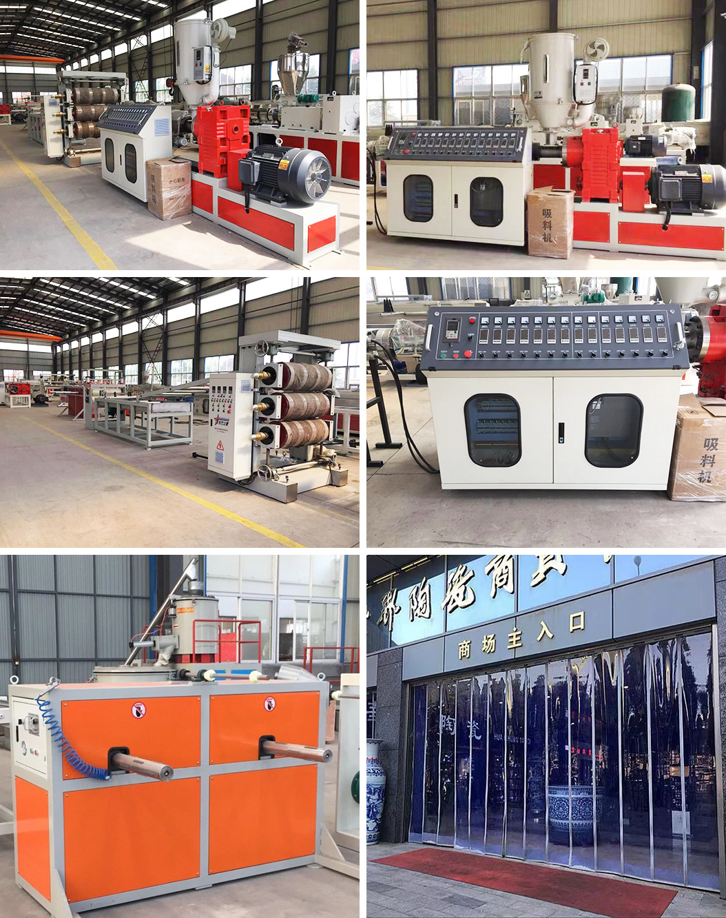PVC透明軟門簾生產(chǎn)線:可生產(chǎn)寬度200-600毫米、厚度0.8-3毫米的PVC透明塑料片材。該設備采SJ90或SJ-120單螺桿擠出機、T型彈性??诳烧{(diào)模具、立式或斜45度三輥壓光機、三合一水溫機、不銹鋼冷卻托架裝并裝有寬幅可調(diào)切邊刀、橡膠輥牽引機、雙工位氣漲軸收卷機。所生產(chǎn)的片材表面光澤,通透無暇,柔軟,無裂縫、無異味、無氣泡、柔軟耐寒、耐磨、耐酸堿、耐腐蝕。
